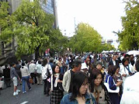 歩行者天国となった御堂筋には開場時刻とともにどっと